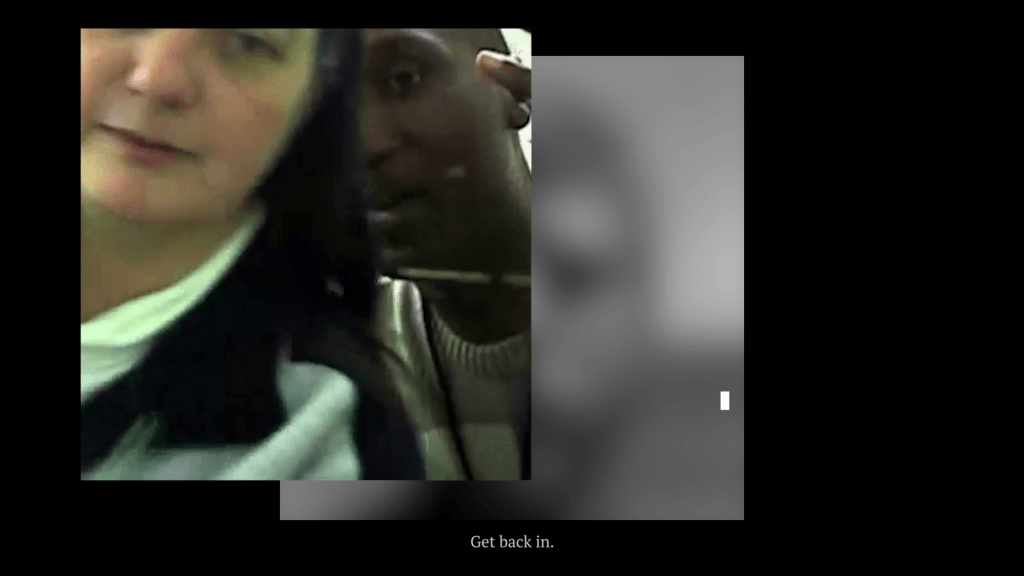Face_frame.read() is an interactive video installation that combines found footage with live facial detection. In an endless loop of individual experiences and deconstructed facial recognition algorithms, the work cycles through a collection of faces. Faces that were unaware, demanded to be seen, or were spotted in the crowd and entered into the system; faces that unlock phones, doors, and borders; faces that can’t afford to be recognized; faces that don’t get to be seen at all, and when you least expect it: your face.